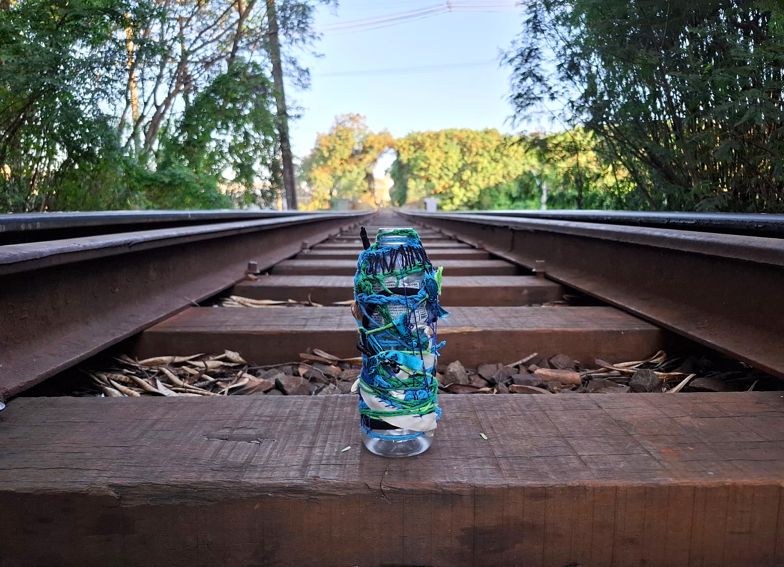 Técnica | Intervenções com garrafas PET recolhidas em trilhas de bicicleta e registros
