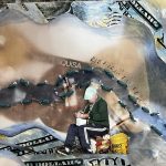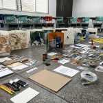A “Mesa de Trabalho com as Águas”, realizada por mim durante a Reunião de Antropologia do Mercosul (RAM) em 4 de agosto de 2025, constituiu uma experiência coletiva de experimentação sensível com cerca de quinze participantes. A atividade combinou apresentação da proposta, compartilhamento de trajetórias e exploração de materiais como papéis, imagens, uma bordado aberto por Valéria Scornaienchi, cartões-postais do Atlas Biográfico do Rio Piracicaba (2023), Livro-ri(s)o (2015). A partir disso, o grupo caminhou pelo campus em “busca das águas”, exercitando uma escuta ampliada de rastros, fluxos e presenças aquosas, que retornaram à sala transformadas em fragmentos, texturas e memórias. O segundo momento envolveu experimentações materiais, colagens, desenhos, aquarelas, compreendidas não como expressão artística, mas como modos de atenção e de seguir as linhas do mundo, inspirados em Tim Ingold (2013). Em seguida, instaurou-se uma ética da interferência ao convidar participantes a interagir com as criações alheias, produzindo um fluxo coletivo de afetos e composições. O encerramento em roda destacou como os materiais abriram novas formas de pensar a pesquisa e os ritmos das águas, reforçando a Mesa como aposta metodológica e política. Assim, a Mesa funciona como um pequeno laboratório de modos de fazer, onde corpo, ambiente e materiais participam ativamente da produção de conhecimento.